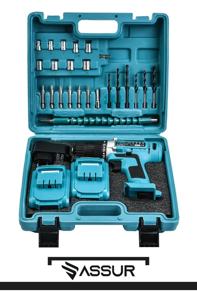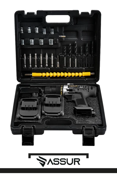 Assur 12V Çift Akülü Vidalama Çelik Şanzıman Bakır Sargılı Şarjlı Matkap
