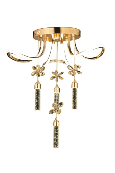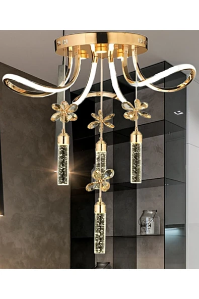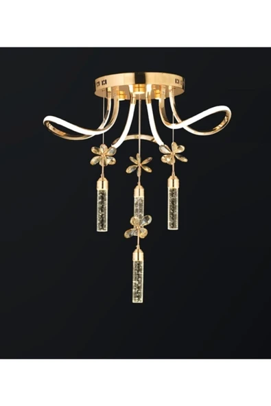 burenze Modern Lüks Kristal Taşlı Plafonyer Avize Eskitme Gold