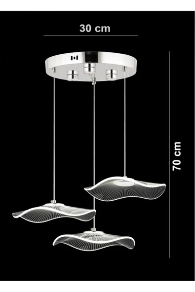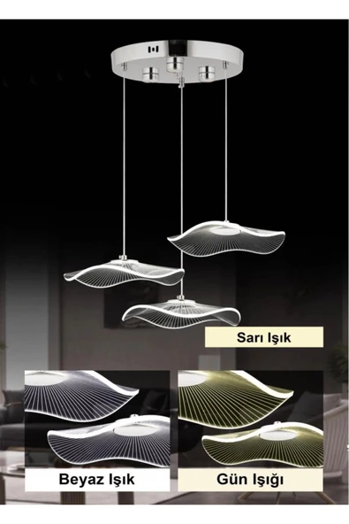 burenze Modern Tasarım Jellyfish 3 Renk Kademeli Işık Üçlü Sarkıt Led Avize Krom Gümüş Gövde
