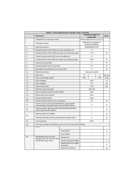 Sunny SN65QMN252 4K Ultra HD 65" 165 Ekran Uydu Alıcılı webOS Smart QLED TV