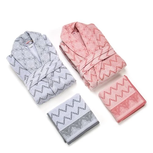 Özdilek Camellia Gri Pembe Bornoz Seti 3400