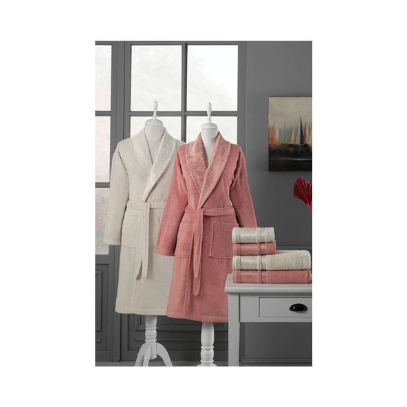Özdilek Branch Aile Bornoz Seti Krem-Mürdüm 6745