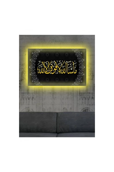 Kanvas Tablo Osmanlı Motif Ayet (Ofis İşyeri) Led Işıklı 50 x 70 cm