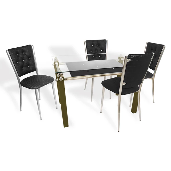 Kapitoneli Cam Mutfak Masa Takımı (Deri) - Siyah