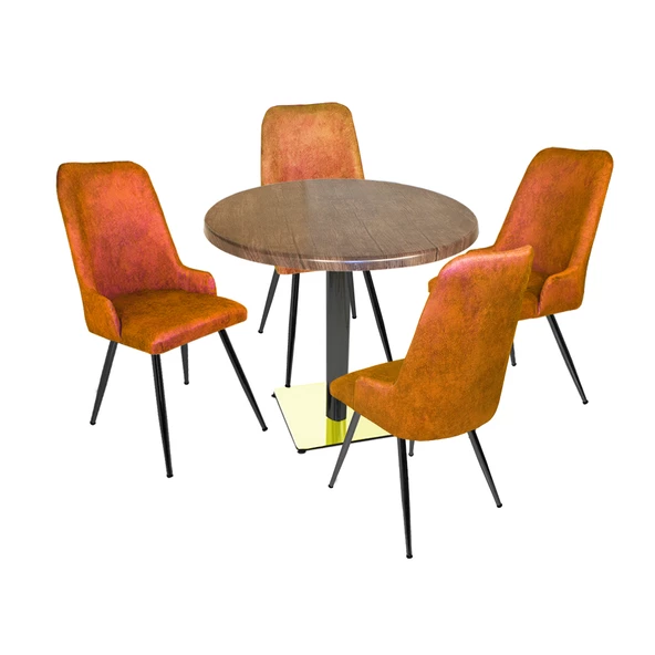 Karanfil Gold Werzalit Yuvarlak - Çırağan Gold Masa Takımı Q90 - Antik Dark Kiremit