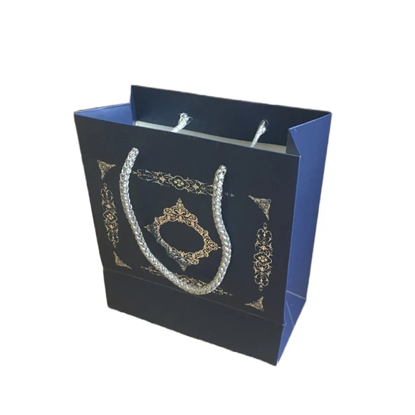 Karton Hediye Çantası Gümüş Saray Desenli 20X20X10 CM (10 Adet) Lacivert