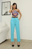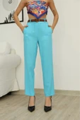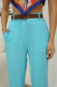 - Kemer Detaylı Beli Lastikli Keten Pantolon 6167-Turkuaz