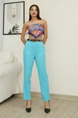 Kemer Detaylı Beli Lastikli Keten Pantolon 6167-Turkuaz
