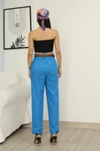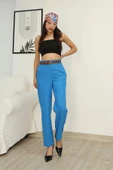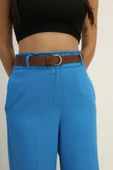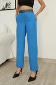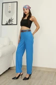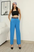 Ana Sayfa Giyim & Aksesuar Kadın Giyim Pantolon Günlük Pantolon Kemer Detaylı Beli Lastikli Kumaş Pantolon 6155-İndigo