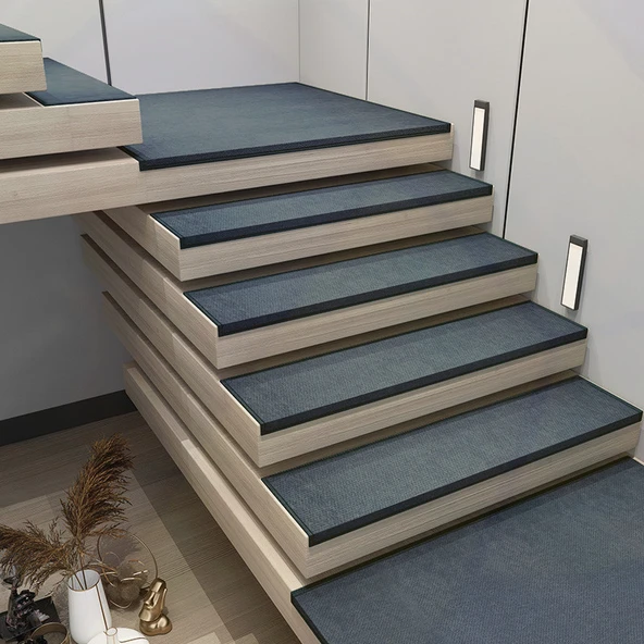Kendinden Yapışkanlı Kaymaz Merdiven Halısı - Mavi 30x85cm Kenarlı