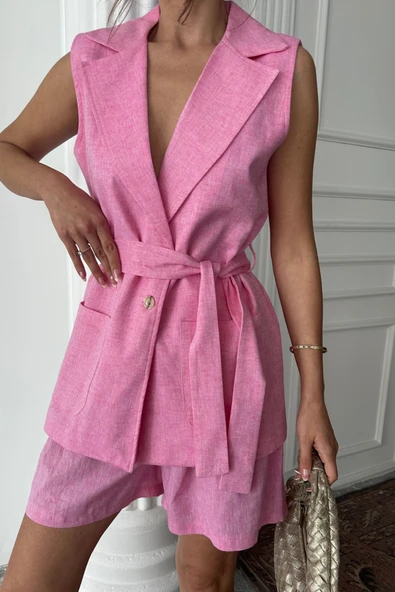 KETEN YELEK - ŞORT TAKIM - Pembe