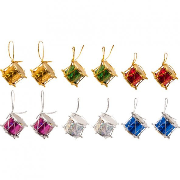 Kikajoy Yılbaşı Çam Ağacı Süsü Renkli Davul 12li