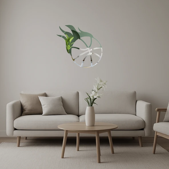 • Kırmızı Alevli Basketbol Topu Dekoratif Aynalı Tablo