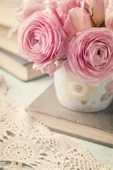 • Kitaplar ve Pembe Çiçek - Kanvas Tablo