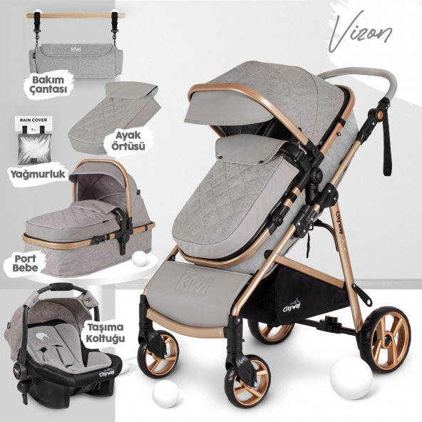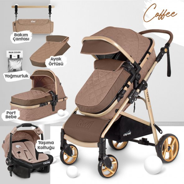 Kiwi City Way 5 in 1 Bebek Arabasi Taşıma Koltuğu Bakım Çantası Yağmurluk