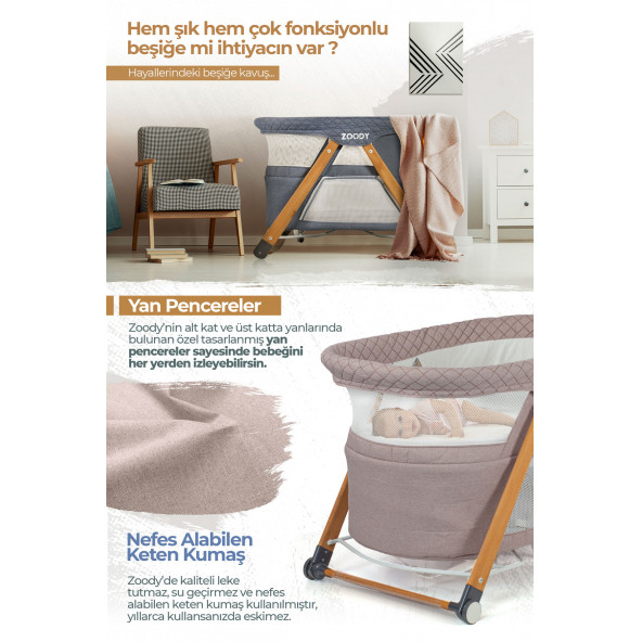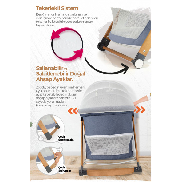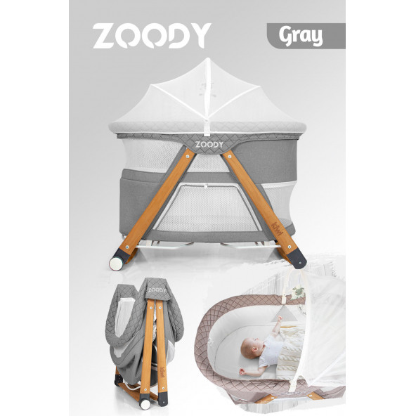 Kiwi Zoody 3 İn 1 Bebek Beşiği, Oyun Parkı Ve Park Yatak Gri