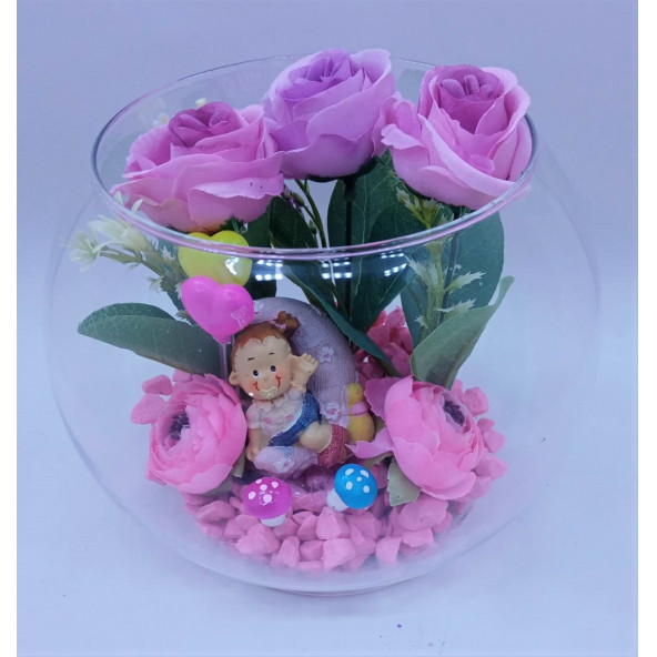 Kız Bebek Yeni Doğan Doğum Tebrik Hediyesi Minik Meleğim Cam Teraryum