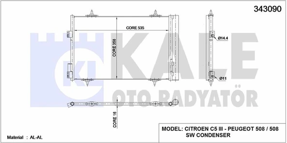 Psa Klima Radyatoru (kondanser) P508 C5 III Dv6c Ep6c Ep6cdt Ep6dt Olcu: (574×361×12) - Kale 343090