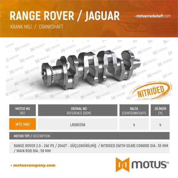 Land Rover Krank MILI Guclendirilmis 2.0 Dizel 204dtd Evoque Discovery Range Rover Sport - Motus 1402
