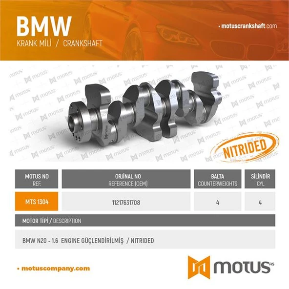 MOTUS markası Bmw Krank MILI Guclendirilmis Bmw N20 B20 F10 F25 E84 - Motus 1304 (MOTUS 1304 kodlu) 11217631708 11212349573 GENMOT 1971 OEM kodlarına sahip BMW araçları için uyumlu olan bu ürün parcayuvasi.com'da uygun fiyatlarla, hızlı ve güvenli kargo ile hizmetinizdedir.