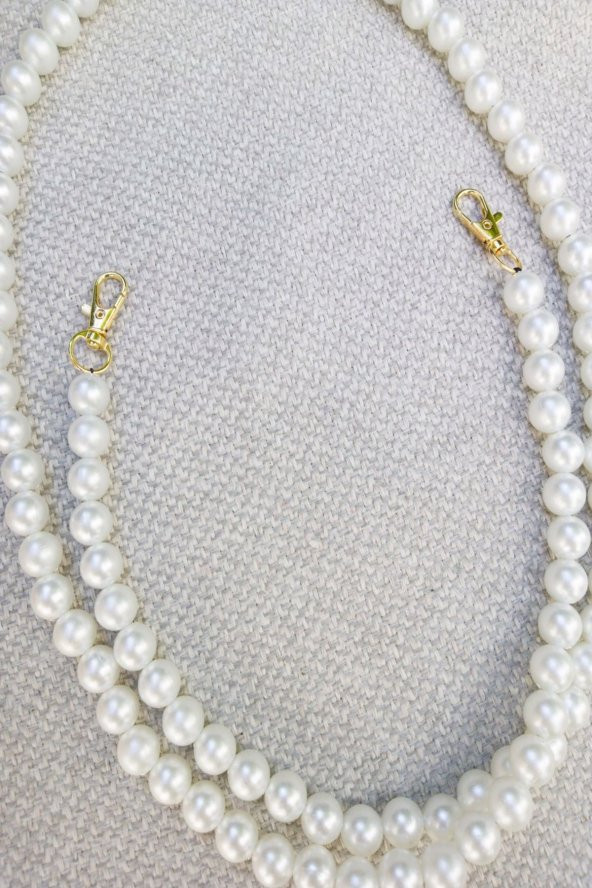 Krem İncili Dekoratif Çanta Askısı 105cm