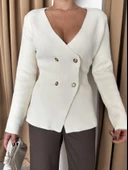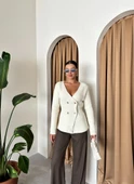 Krem Zarif Dört Düğmeli HırkaBeden Seçiniz
