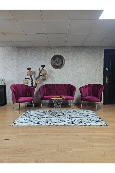 Krom Kaplama Sivriltme Ayak Bordo Döşeme Papatya Çay Seti Koltuk Takımı , Balkon, Salon, Ofis, Cafe Koltuk Takımı
