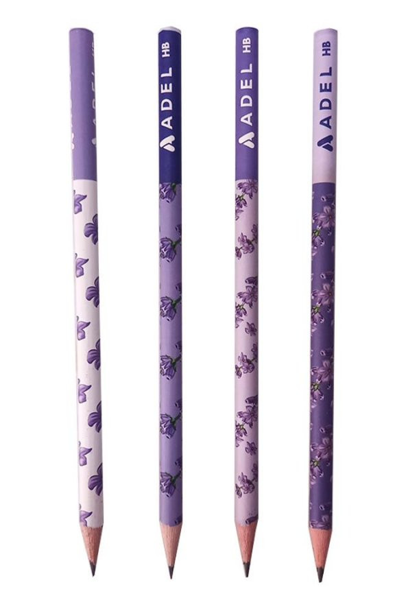 Kurşun Kalem 4 Adet Lavanta HB Siyah Kurşun Kalem Lavanta Desenli HB Kalem Yerli Üretim