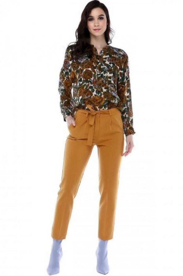 Kuşaklı Hardal Bilek Kadın Pantolon