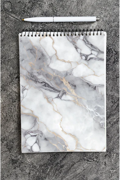 kutuTR Mermer Desenli Ahşap Mdf Kapaklı 80 Yaprak Çizgili 14x21 Vip Bloknot 70gr/m2 Ç-OB14