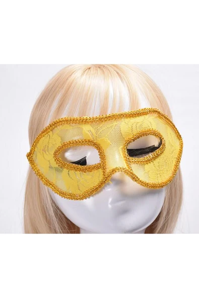 KUZGUN ONLİNE SHOP Dantel Tül Malzemeden İmal Sarı Renk Balo Parti Maskesi Venedik (4767) - Lisinya