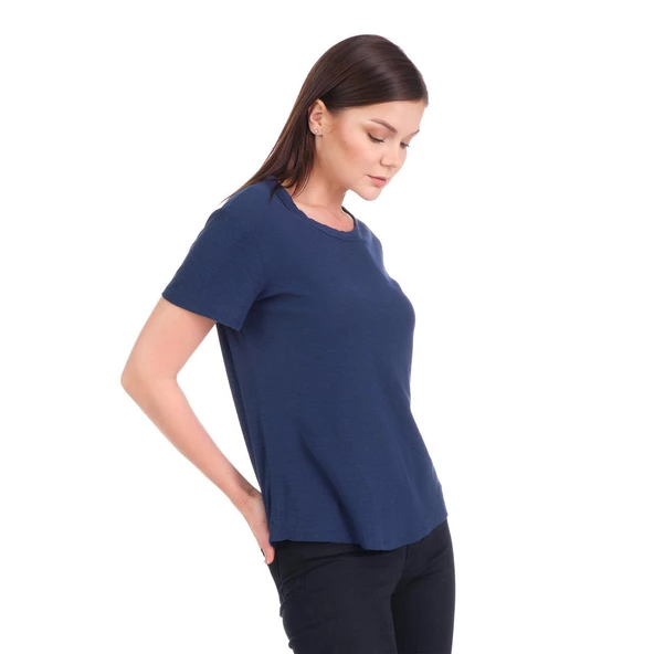 Ana Sayfa Giyim & Aksesuar Kadın Giyim T-Shirt Bisiklet Yaka Lacivert Bisiklet Yaka Organik Pamuklu Tişört