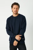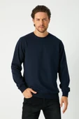 Lacivert Relaxed Fit Bisiklet Yaka Sweatshirt Düz Paça Erkek Eşofman Takımı