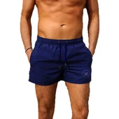 Lacivert Su İtici Özellikli Baskılı Erkek Kısa Deniz Şort Mayo -