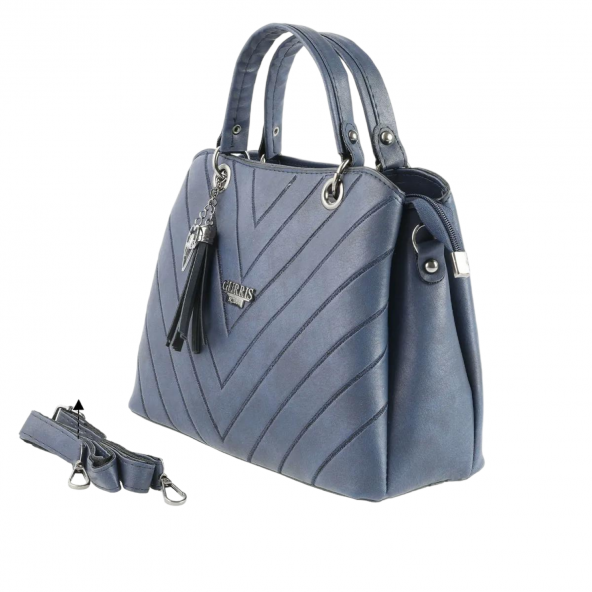 Lacivert V Model Nakışlı Bayan Askılı El ve Omuz Çantası