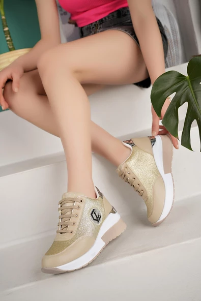 Lady Classy Kadın Taşlı Rahat Kalıp Topuklu Spor Ayakkabı