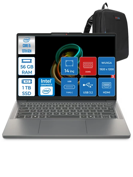 Lenovo Ideapad Slim 3 Intel Core I5 13420H 56GB Ddr5 512GB + 512GB SSD Intel® UHD Graphics WIN11PRO 14" Wuxga IPS Taşınabilir Bilgisayar 3S15IRH10P14 + Zettaçanta