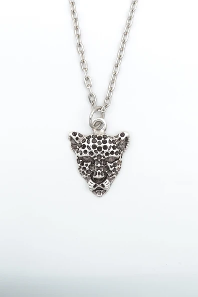 Leopar Gümüş Kaplama Düz Zincir Kolye