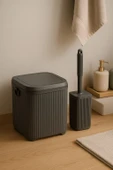 Lines Serisi Gri 2'li Banyo Seti, Akrilik Kare 5 Litre Çöp Kovası, Tuvalet Fırçası Takımı 3460