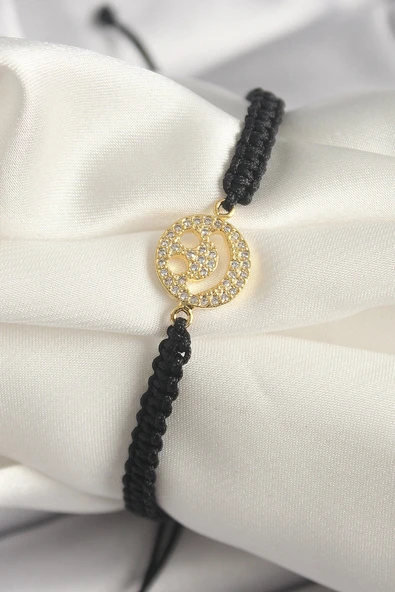- Litae Trend BFS Pirinç Gold Renk Zirkon Taşlı Taç Figür Asansörlü Makrome Model Kadın Bileklik