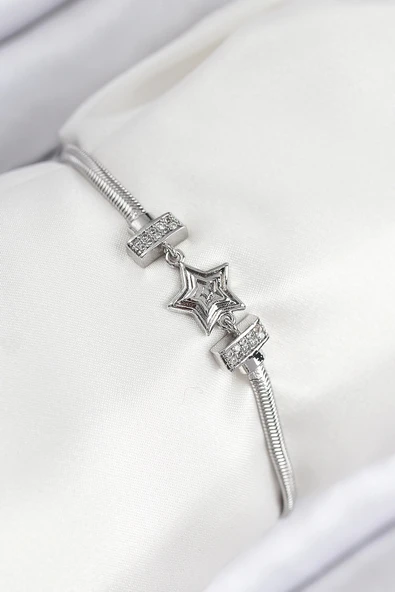 - Litae Trend BFS Pirinç Zirkon Taşlı Yıldız Model Gümüş Renk Kadın Bileklik