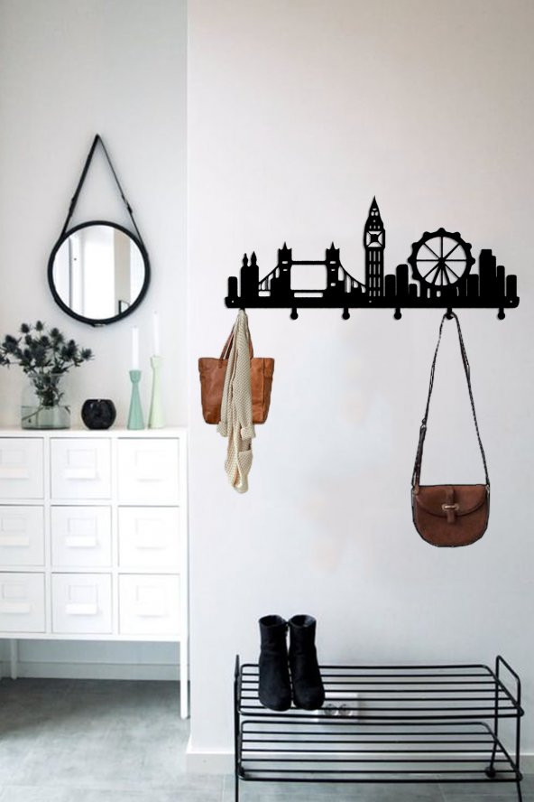 Ana Sayfa Ev Dekorasyon Mobilya Antre & Hol Kapı Ve Duvar Askılık Londra Şehir Silüeti Metal Askılık - Dekoratif Askı - Duvar Askısı - Elbise Askısı