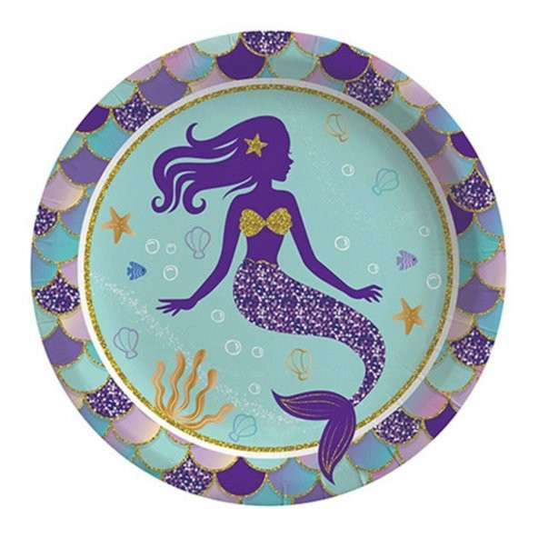 Lüks Doğum Günü Karton Tabak 8 Adet 23cm Deniz Kızı Baskılı Tabak