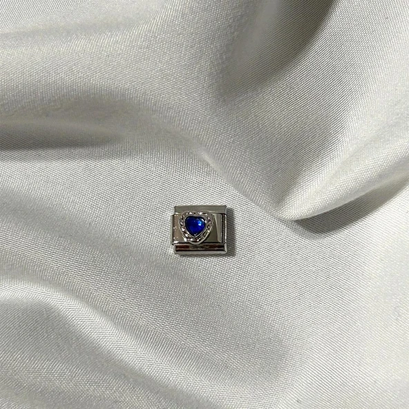 Lüks İtalyan Bileklik Mini Mavi Kalp Charm