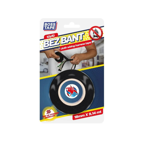 Bosstape Yanmaz Kumaş Tüylü Bez Kablo 18x9,4MT