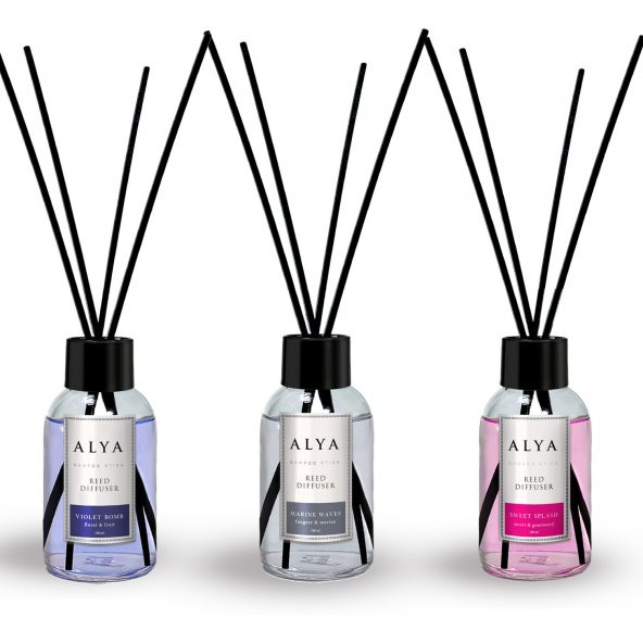Alya Bambu Çubuklu Oda Kokusu Wave Marine ve Sweet Splash ve Violet Bomb 100 ml x 3 Adet