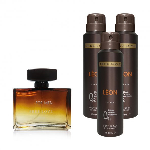 Free Love Leon EDP Erkek Parfüm 100 ml ve Deodorant 150 ml 3 Adet