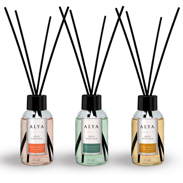 Alya Bambu Çubuklu Oda Kokusu Egzotic Leaves ve Woody Oriental ve Tropic Breeze 100 ml x 3 Adet