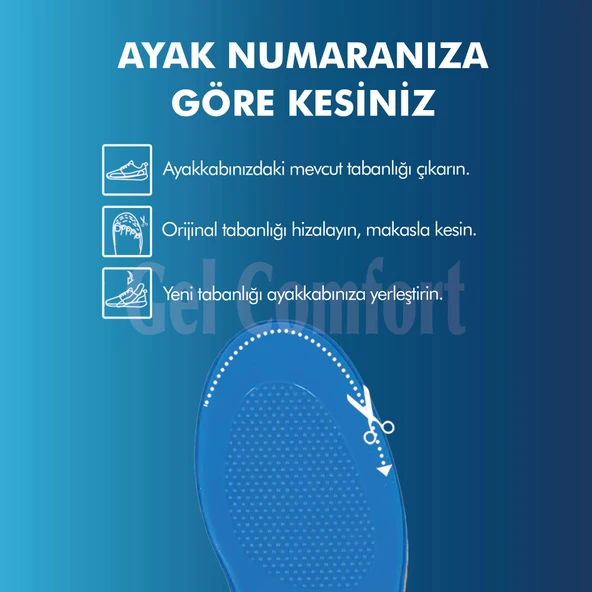 GC20 | Ark Destekli Yumuşak Jel, Tüm Ayakkabılar ile Uyumlu Rahat Ortopedik 3/4 Konfor İç Tabanlık