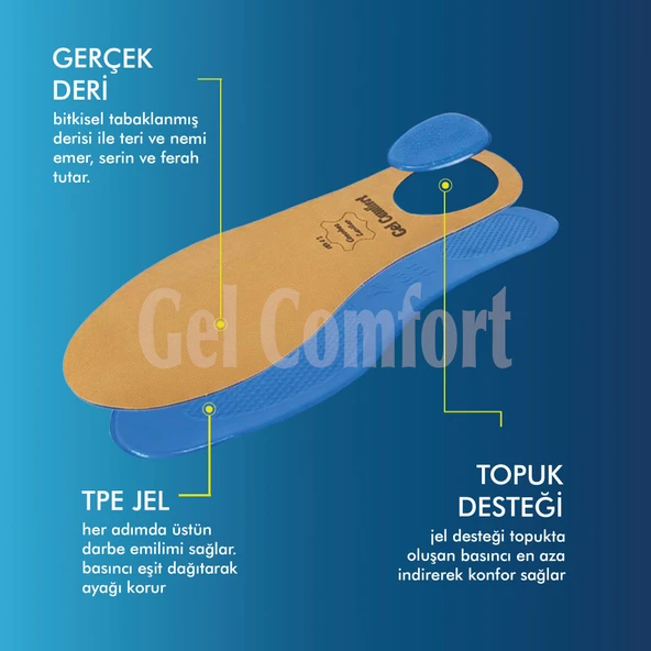 GC18 | Yumuşak Jel, Hakiki Deri, Konfor, Tüm Ayakkabılar ile Uyumlu Topuk Destekli Rahat İç Tabanlık